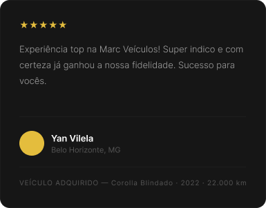 Cada veículo passa por vistoria técnica completa antes de entrar no estoque. Você recebe o laudo.
